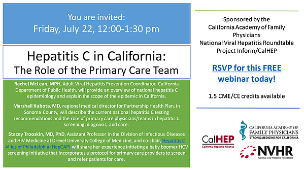 Hepatitis C in California: The Role of the Primary Care Team | FREE CME WEBINAR, Friday, July 22, 12:00-1:30 pm
