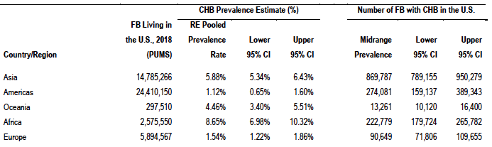 Chronic Hepatitis B Prevalence Among Foreign-Born Persons Living in the United States