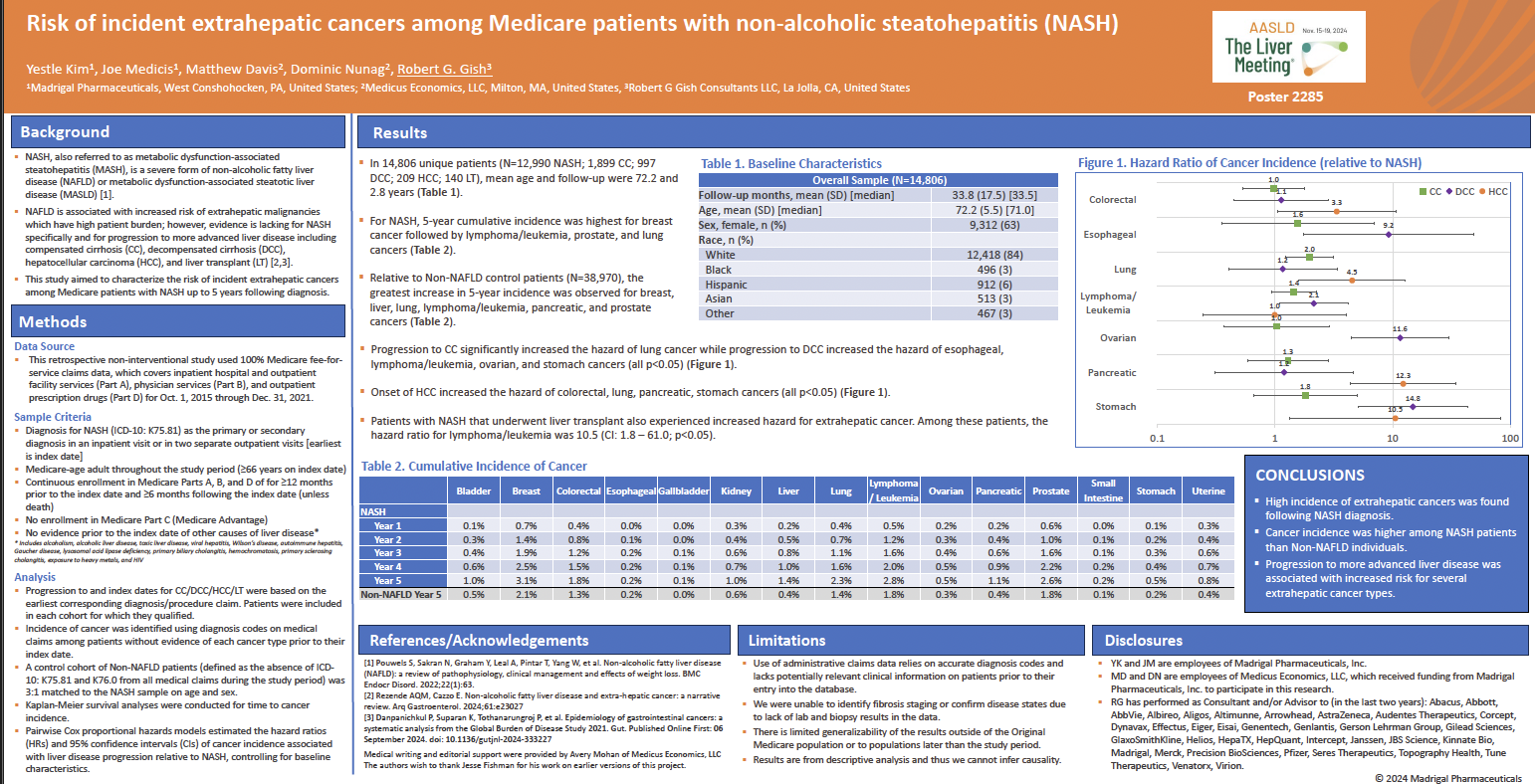 - This study aimed to characterize the risk of incident extrahepatic cancers among Medicare patients with NASH up to 5 years following diagnosis.