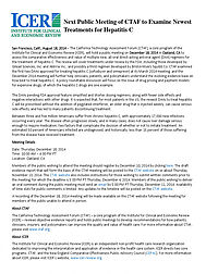 The California Technology Assessment Forum (CTAF), a core program of the Institute for Clinical and Economic Review (ICER), will hold a public meeting on December 18 2014 in Oakland CA to assess the comparative effectiveness and value of multiple new, all-oral direct-acting antiviral agent (DAA) regimens forthe treatment of hepatitis C.
