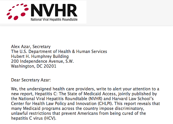 Please take a few minutes to sign a letter for better HVC Treatment Access. Feel free to re-distribute or share this page.