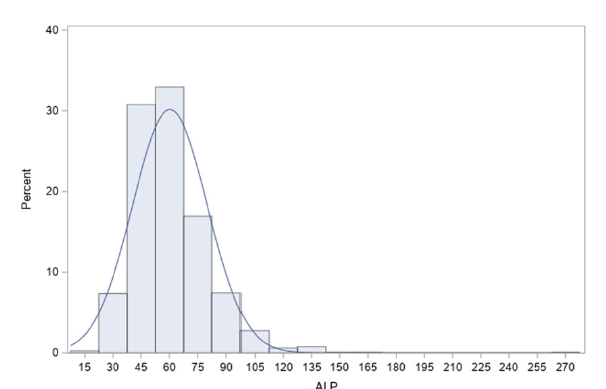 The upper limit of normal alkaline phosphatase varies by race/ethnicity in a large US sample with body mass index of 18.5<25.