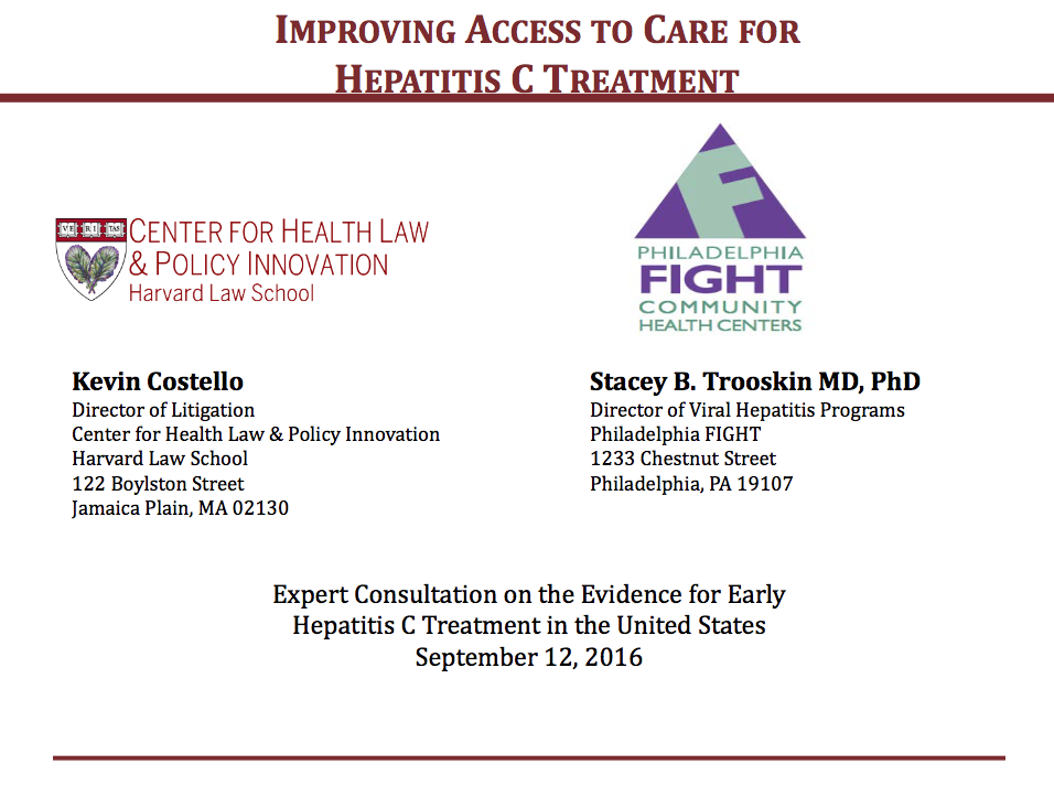 Kevin Costello, JD, Senior Associate Director and Litigation Director, Center for Health Law Policy Innovation, Harvard Law School Stacey Trooskin, MD, PhD, Director of Viral Hepatitis Programs, Philadelphia FIGHT Community Health Centers